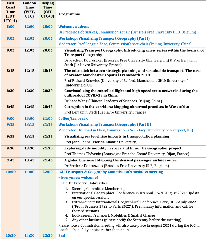 Online Workshop “Visualising Transport Geography”& Business Meeting